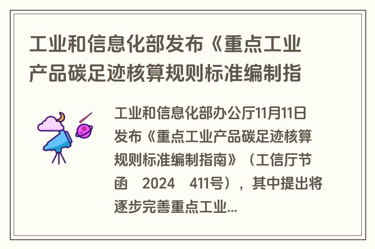 重点制修订二氧化碳、甲烷等温室气体监测方法、监测设备、在线监测系统和碳管控平台建设等标准,大气成分物理化学特性长期动态观测、监测、评估、预报相关标准。制修订地区、园区等区域碳排放核算和报告标准。加快制修订能源、冶金、建材、化工、有色、纺织、机械、信息通信、交通运输、畜禽养殖等重点行业企业碳排放核算和报告标准以及数据质量相关标准规范。完善能效提升、可再生能源利用、原燃料替代、余能利用、生物海洋林草土壤固碳、畜禽养殖等典型项目碳减排量评估标准。研制产品碳足迹量化和种类规则等通用标准,探索制定重点产品碳排放核算及碳足迹标准。制修订碳排放核查程序、人员和机构等基础共性标准。
