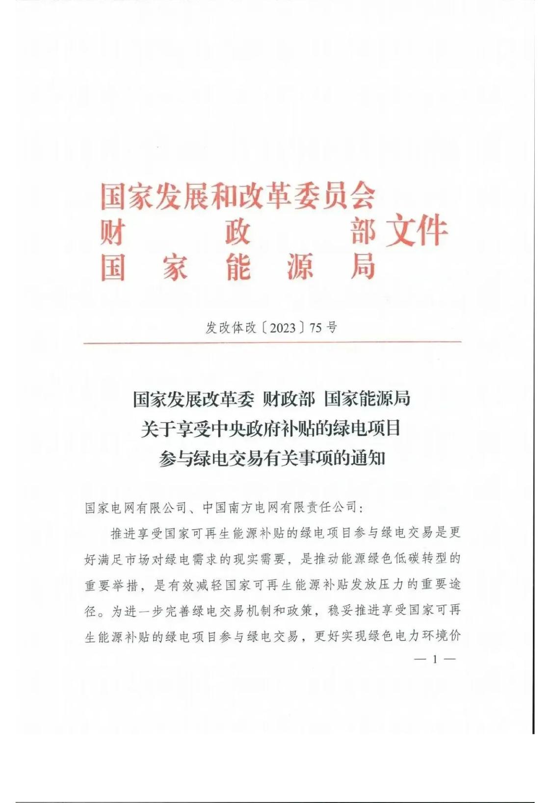 国家发改委 财政部 能源局印发《关于享受中央政府补贴的绿电项目参与绿电交易有关事项的通知》