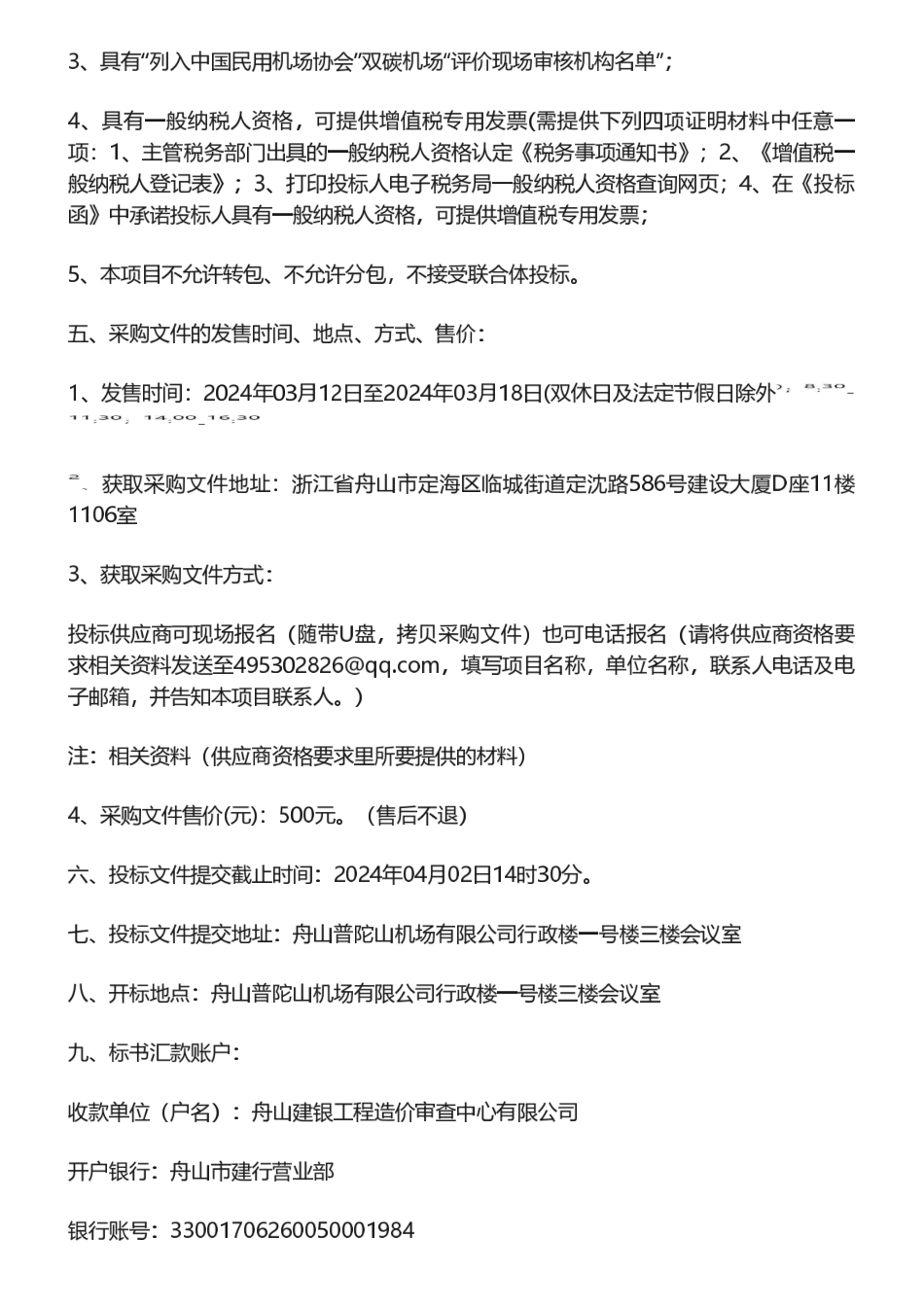 【招标】碳系统-舟山机场“双碳机场”评价技术服务项目采购公告.pdf