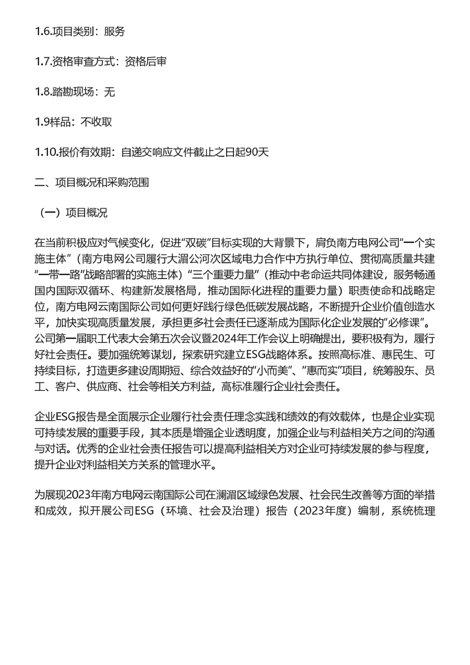 【招标】ESG服务25万-南方电网云南国际有限责任公司2024年ESG(环境、社会及治理)报告(2023年度)编制服务专项采购公告_第2页