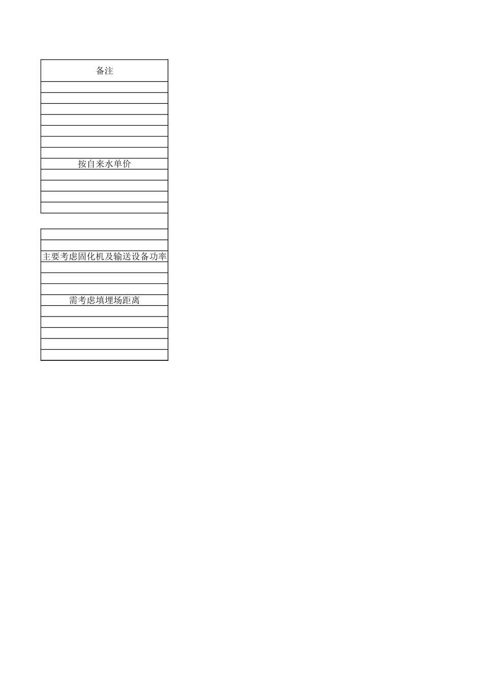 垃圾焚烧厂飞灰固化营运成本分析编号项目单位1日处理垃圾量t/d2,0002,0002,0002年处理飞灰量t/a20,00020,00020,0003固化剂添加量%1.52.530.04固化剂年使用量t/a3005006,0005固化剂到厂单价20,50018,5003506固化剂使用费用6,150,0009,250,0002,100,0007稀释水用量t/a4,4004,0005,0008稀释水单价3.463.463.469稀释水费用15,22413,84017,30010人工费124,800124,800124,80011总处理费用6,290,0249,388,6402,242,10012飞灰处理费用单价314.5469.4112.1飞灰处理营运成本分析13固化后费用重量24,70024,50031,00014固化后扩容率%1.241.231.5515单位消耗电费25.0025.0025.0016年消耗电费617,500612,500775,00017维修维护摊算费用8.008.008.0018维修维护摊算费用197,600196,000248,00019运输成本65656520运输费用1,605,5001,592,5002,015,00021填埋单价45454522填埋费用1,111,5001,102,5001,395,00023总营运费用9,822,12412,892,1406,675,10024飞灰营运费用491645334方案1(固态螯合剂)方案2(液态螯合剂)方案3(水泥固化)元/t元/t元/t元/a元/a元/a元/t吨/a元/t元/a元/t元/a元/t元/a元/t元/t元/a元/t备注按自来水单价主要考虑固化机及输送设备功率需考虑填埋场距离