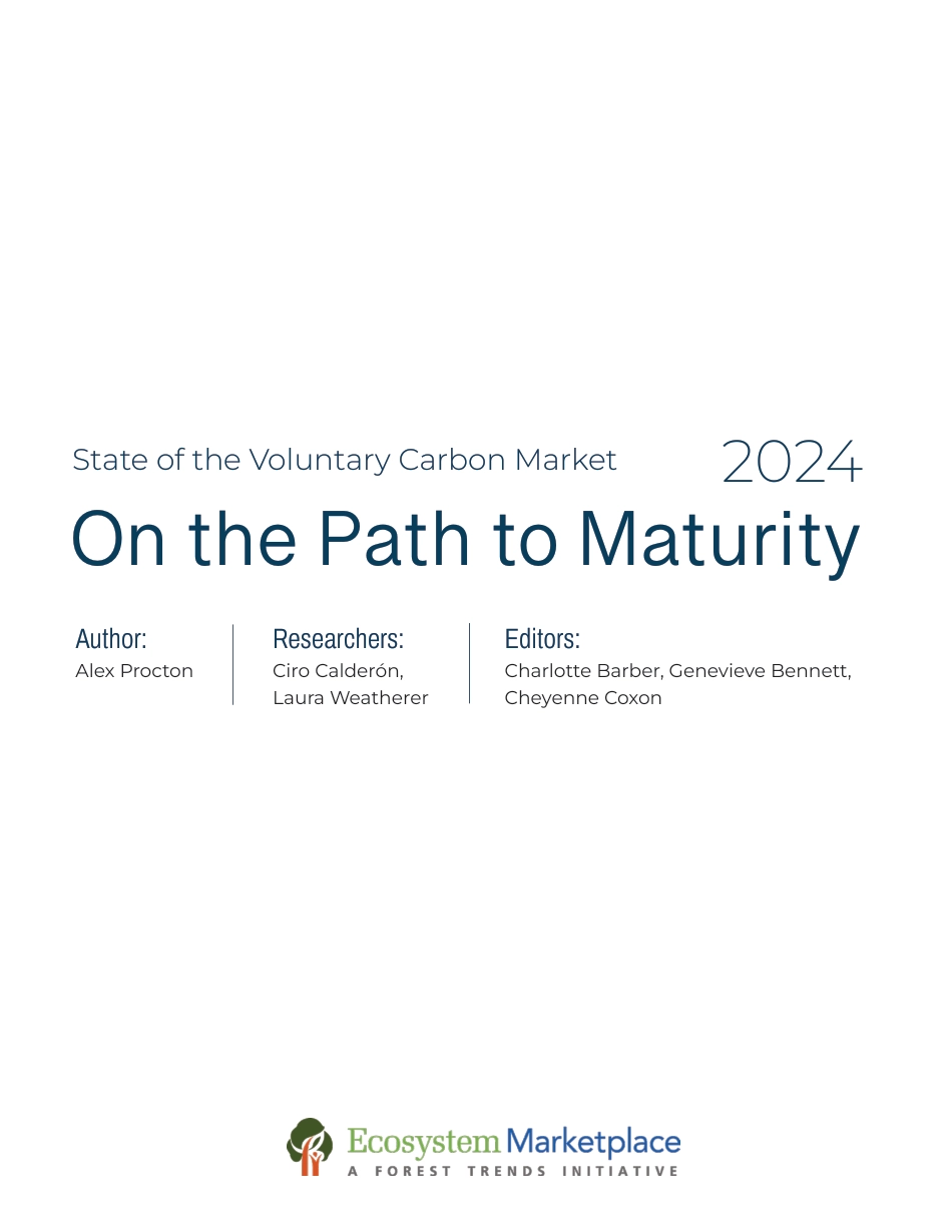 OnthePathtoMaturityStateoftheVoluntaryCarbonMarket2024OnthePathtoMaturityStateoftheVoluntaryCarbonMarketStateoftheVoluntaryCarbonMarket20242024Author:AlexProctonEditors:CharlotteBarber,GenevieveBennett,CheyenneCoxonResearchers:CiroCalderón,LauraWeathererAboutEcosystemMarketplaceEcosystemMarketplace(EM),anon-profitinitiativeofForestTrends,isaleadingglobalsourceofcredibleinformationonenvironmentalfinance,markets,andpaymentsforecosystemservices.Fornearlytwodecades,EMhasruntheworld’sfirstandonlygloballyrecognizedandstandardizedreportingandtransparencyplatformforvoluntarycarbonmarket(VCM)creditpricingdata,news,andinsights.EM’sflagshipStateoftheVoluntaryCarbonMarketreportsandotheranalysesoncarboncreditmarketdynamics(e.g.,prices,volumes,projects,corporatebuyers,sellers,etc.)andcarbonstandardissuanceandretirementdatahavebecomeanticipatedindustrystaples.EMalsoprovidesapubliclyaccessibledataintelligencedashboardandanewsplatformformarketcoverage.EMdataonprices,regulation,science,andotherrelevantissuesonenvironmentalservicesmarketsandclimatefinancehavebeenusedextensivelybyarangeofmarketactors,fromcompanies,journalists,andinvestors,topractitioners,naturalresourceagencies,academics,andlocalandindigenouscommunities.AboutForestTrendsForestTrendsAssociationisa501(c)(3)organizationfoundedin1999.ForestTrendsworkstoconserveforestsandotherecosystemsthroughthecreationandwideadoptionofabroadrangeofenvironmentalfinance,markets,andotherpaymentandincentivemechanisms.ForestTrendsdoessoby1)providingtransparentinformationonecosystemvalues,finance,andmarketsthroughknowledgeacquisition,analysis,anddissemination;2)conveningdiversecoalitions,partners,andcommunitiesofpracticetopromoteenvironmentalvaluesandadvancedevelopmentofnewmarketsandpaymentmechanisms;and3)demonstratingsuccessfultools,standards,andmodelsofinnovativefinanceforconservation.CopyrightandDisclaimer©2024EcosystemMarketplace,aninitiativeofForestTrendsAssociation.Allrightsreserved.EcosystemMarketplaceisaninitiativeofForestTrends,locatedat120319thStreetNW,4thFloor,Washington,DC20036|info@ecosystemmarketplace.com|www.ecosystemmarketplace.com|www.forest-trends.orgDataonthevoluntarycarbonmarkettransactionsinthisdocumentwerederivedfrominformationsuppliedbyparticipantsinamarketsurvey.ForestTrends’EcosystemMarketplacedoesnotrepresentorwarranttheaccuracy,suitability,orcontentofthesurveyresponsesortheresultsofthatsurveyassetoutherein.ItisthesoleresponsibilityandobligationofthereaderofthisreportStrategicSupportersVisionaryPartnerstosatisfythemselvesastotheaccuracy,suitability,andcontentoftheinformationcontainedtherein.ForestTrends’EcosystemMarketplace(includingitsrespectiveaffiliates,officers,directors,partners,andemployees)makesnowarrantiesandshallhavenoliabilitytothereaderforanyinaccuracy,representation,ormisrepresentationsetoutherein.ThereaderfurtheragreestoholdForestTrends’EcosystemMarketplaceharmlessfromandagainstanyclaims,loss,ordamageinconnectionwithorarisingoutofanycommercialdecisionsmadeonthebasisoftheinformationcontainedherein.Thereaderofthisreportisstronglyadvisednottousethecontentofthisreportinisolation,buttotaketheinformationcontainedhereintogetherwithothermarketinformationandtoformulatetheirownviews,interpretations,andopinionsthereon.Thereaderisstronglyadvisedtoseekappropriatelegalandprofessionaladvicebeforeenteringintocommercial...