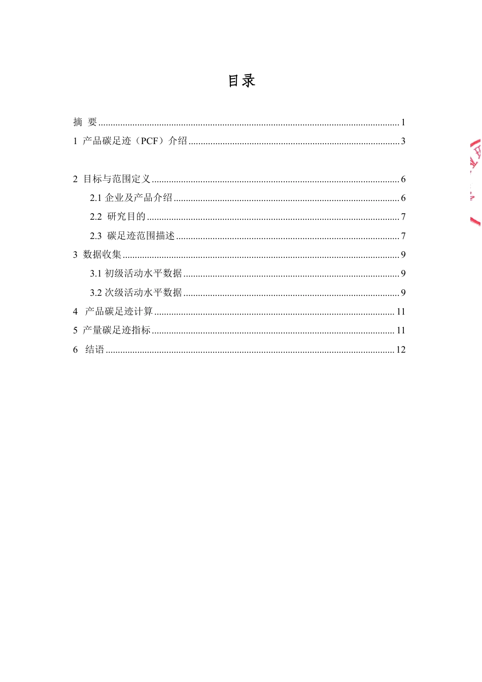 南京碧盾环保科技股份有限公司产品碳足迹评价报告制造商名称:南京碧盾环保科技股份有限公司地址:南京市江北新区高新技术开发区评价机构名称(公章):机械工业环保产业发展中心报告编号:MEIDC-CCHG-2024-03碳足迹报告类型:产品碳足迹报告范围:2023-01-01至2023-12-31报告日期:2024年3月27日目录摘要............................................................................................................................11产品碳足迹(PCF)介绍.......................................................................................32目标与范围定义......................................................................................................62.1企业及产品介绍.............................................................................................62.2研究目的........................................................................................................72.3碳足迹范围描述............................................................................................73数据收集..................................................................................................................93.1初级活动水平数据.........................................................................................93.2次级活动水平数据.........................................................................................94产品碳足迹计算...................................................................................................115产量碳足迹指标....................................................................................................116结语.......................................................................................................................121摘要气候变化是21世纪人类面对的重要挑战。为此,各国积极地采取了行动,哥本哈根的联合国气候谈判会议承诺各国将“遵循科学,在公平的基础上实现减排目标”。我国也积极采取措施推进节能减排工作,制定相关政策,并承诺在2020年将单位GDP的碳排放强度比2005年降低40~45%。产品碳足迹是从生命周期的角度,将产品从原材料、运输、生产、使用、处置等阶段所涉及的相关温室气体排放进行调查、分析和评论。除了满足客户本身的需求外,根据调查出的结果,实施深入的产品碳足迹管理,结合生态设计等内容,研究减少碳足迹的具体措施,如更加低碳的原物料、轻度包装、合理的运输规划,实现工厂节能减排等目的。目前国内外主要碳足迹、碳中和规范有:PAS2050:2011、ISO14040:2006、ISO14044:2006、PAS2060:2010、ISO14067:2013深圳产品碳足迹评价通则等,随着全球应对气候变化进程不断加快,产品碳足迹认证规范势必为成为引领绿色消费的利剑。产品的“碳足迹”(CFP)可间接评价一件特定产品的制造、使用和废弃阶段,从“摇篮到坟墓”的整个过程中温室气体排放量,体现出整个阶段耗能情况,同时反映出产品的环境友好程度。2机械工业环保产业发展中心(简称“环保中心”)受南京碧盾环保科技股份有限公司委托,对南京碧盾环保科技股份有限公司主营产品进行了碳足迹核算与评估。碳足迹盘查组2024年3月20日对南京碧盾环保科技股份有限公司进行了现场访问,对南京碧盾环保科技股份有限公司的主营产品碳足迹进行核算与评估。本报告以生命周期评价方法为基础,采用PAS2050:2011标准《商品和服务在生命周期内的温室气体排放评价规范》中规定的碳足迹核算方法,计算得到南京碧盾环保科技股份有限公司“1吨产品”的碳足迹。此外,南京碧盾环保科技股份有限公司在企业生产规程中,积极开展产品碳足迹评价,碳足迹核算是南京碧盾环保科技股份有限公司实现低碳、绿色发展的基础和关键,披露产品的碳足迹是南京碧盾环保科技股份有限公司环境保护工作和社会责任的一部分,同时也是南京碧盾环保科技股份...