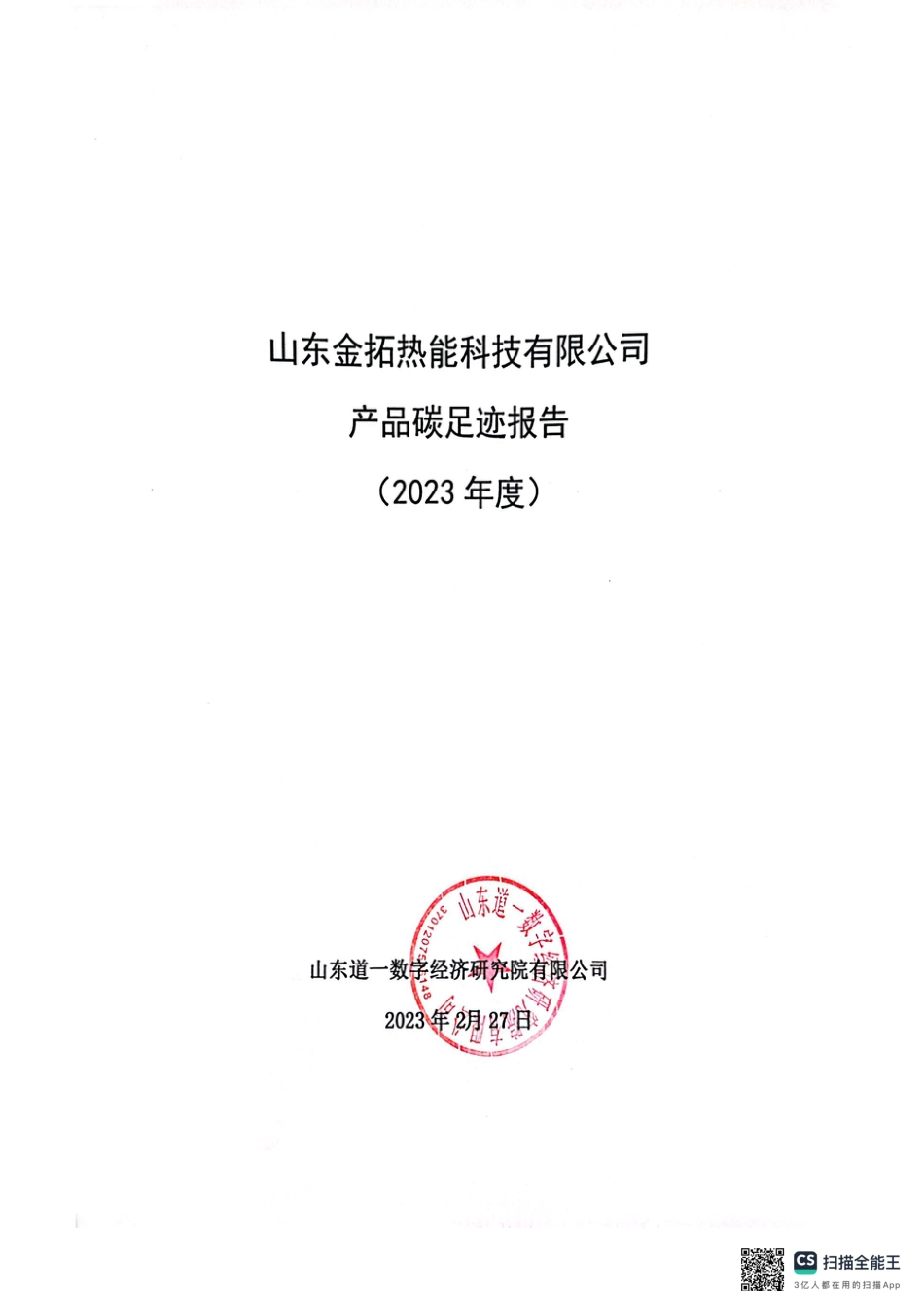 【碳足迹报告】山东金拓热能科技有限公司2023年度产品碳足迹报告