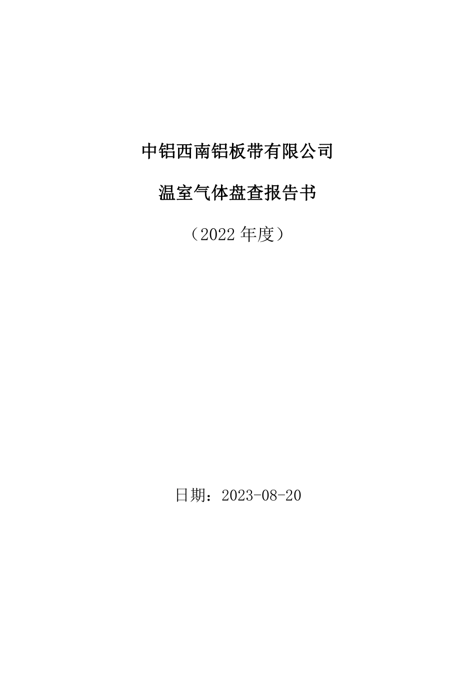 中铝西南铝板带有限公司温室气体盘查报告书2022年度_第1页