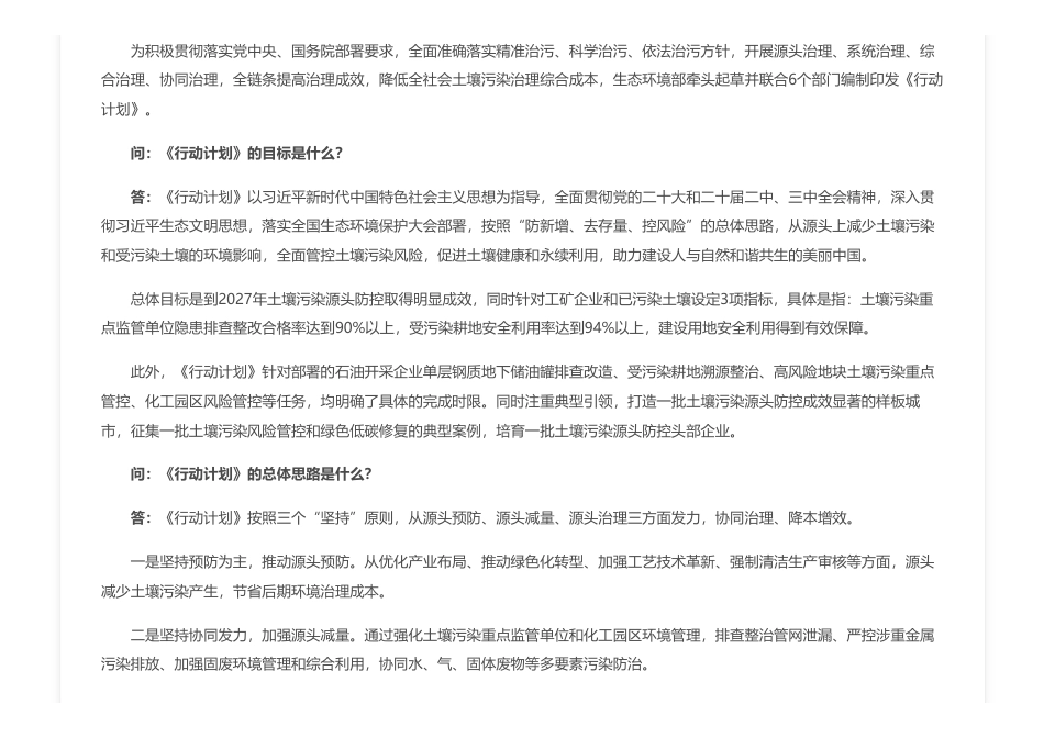 生态环境部土壤司有关负责同志就《土壤污染源头防控行动计划》答记者问