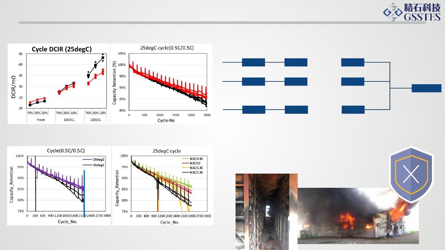 集控链智慧储能解决方案www.gsstes.com西安精石电气科技有限公司安全性和经济性制约储能的发展共性要求制约因素:安全经济安全耐久稳定经济储能系统需解决的问题—延长寿命,提高安全性电池簇1… …… …… …… …电池簇2… …电池簇n… …电池控制器Cycle life=f(C倍率,T)针对设计电流倍率,正常组经常处于过流态,会降低电池寿命内阻异常组电池发热异常,也会降低电池寿命任一电芯出现异常:随着循环次数增加,电池特性差异性明显,剩余容量差距也越来越大电芯温度与循环寿命放电倍率与循环寿命储能系统需解决的问题—提高经济性梯次电池利用场景库存电池利用场景新电池利用场景单体充电截止电压停止充电,单体放电截止电压停止放电Cap有效=f(Cap标称,C倍率,T,△V)AB储能创新的解决方案在哪里?深则厉,浅则揭——《诗经·邶风·匏有苦叶》集控链智慧储能解决方案• 更加精细化控制。• 智能控制器6kW~60kW。集控链方案,根据电池情况灵活配置梯次电池6kW/10kW库存电池30kW/50kW/60kW新电池30kW/50kW/60kW集控链之集---集成化PCSBCUBCUPCUWIFI/GPRSRS485RS232DC/DCDC/DCAC/DCSCUTCP/IP交流直流通信EMS集控链之集---集成化AC/DC单元DC/DC单元储能电池单元BCUPCUSCU数据采集,数据处理数据帧重组,并发处理数据采集,配置管理指令下发,模块开关机数据采集,配置管理逻辑控制,逻辑切换数据采集,数据处理运行策略,人机交互EMS数据通信人机交互数据处理运行策略集控链之控---智能管控1 接受BMS信息2 主动监控3 安全防护模型对于接入锂电电池过充保护电池过压保护过流保护高温保护低温保护热失控保护对BMS诊断BMS报文校验电池继电器诊断连通性诊断对电池进行智能管控、、、、、事故追忆实时存储PCS及电池关键数据本地EMS实时显示正常运行采集间隔15秒故障前后采集间隔1秒专家系统PCS 实时监测本地EMS预警提示PCSEMS-Access电池及BMS系统信息录播技术充放电电流集控链PCS 智能充电方式电池需求多维度因素电池SOC、SOH环境因素电网因素停留时间电池温度环境温度EMS-AccessHMI本地显示远程显示标准功能标准功能描述PCS接入系统默认可接入PCS下所有设备标准接出接口提供固定格式系统数据接口系统首页1. 关键信息展示,包括节能费用、日充放电、电池SOC和运行策略信息2. 以拓扑图的形式展示当前系统的运行状态3. 报表信息展示,分别为电能费用日报表、功率报表和电池报表设备管理查看对应AC/DC、DC/DC、电池、空调的设备详细...