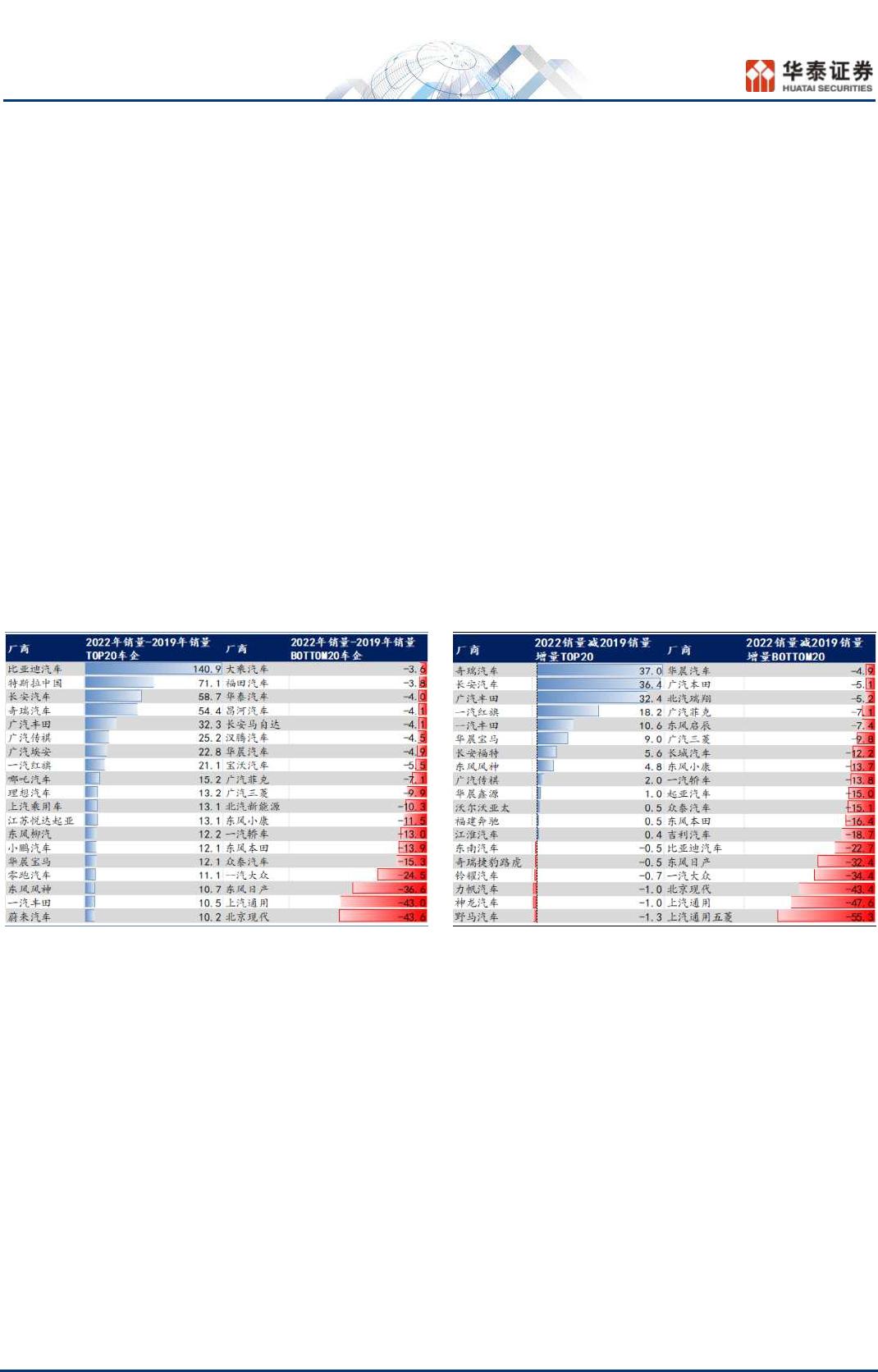 免¯声明和ë露以ÛV析师声明是报告的一部V,ÿá必一起阅ü2 1 证券研究报告 汽车 颠覆P突破:油电�ÿ点燃汽车û海潮 _泰研究 汽车 增持 (维持) 研究员 Ûññ SAC No. S0570522110001 SFC No. BTK945 songtingting021619@htsc.com +(86) 21 2897 2228 研究员 王_ SAC No. S0570520110001 SFC No. AOH868 bruce.wang@htsc.com +(86) 21 2897 2099 研究员 x建ÿ SAC No. S0570522020002 shenjianguo@htsc.com +(86) 755 8249 2388 研究员 王ÿ嘉 SAC No. S0570517050002 SFC No. BEB090 wangweijia@htsc.com +(86) 21 2897 2079 联系人 陈诗慧 SAC No. S0570122070128 SFC No. BTK466 chenshihui@htsc.com +(86) 21 2897 2228 Ì业走势Ā 资料来源ÿWind,_泰研究 Þ点è荐 股票]Ā 股票代码 目标ÿ (`地_种) ÷资评ÿ ÿÞï 002594 CH 393.72 买入 资料来源ÿ_泰研究预测 2023 � 5 o 11 日│中ÿ内地 _ 研究 复盘à�车`格局ÙW,自�品牌展ā强ô走势 s们复盘 18 �以来乘用车`场的格局,呈ā了n大ÙWÿ1Ā燃油车QÌ�势明显,ð能源车à�渗�222 �ð能源渗�率迅�攀升ó 28%,尤wÐQ游消费者Ê察,p 27%的燃油车增换购用户流Uð能源`场,\ÿ+12.1 pctĀ2Ā自�品牌崛起,\资品牌份额Q滑2ð能源机遇来临之×,中ÿ车企发力�术创ð1ÿ极扩张ï品矩·,而\资品牌的ð车节奏 渐O力,最Ā被×代了部V份额218-22 �自�`s率Ð 42.2%升ó 50.5%,22 �ÿÞï登þ乘用车销à榜首的\时,Xðā代1P汽通用1东风日ï1一汽大_等品牌销à大幅Q滑2s们看好o来油电�ÿQ自�à�ÿ代\资1龙头û海ß程持续突破,è荐ÿÞï,ï业内相s}øß包括长城汽车等2 头部自�p望在 23 �胜û,\资面临<àÿÝ杀=困境 展望^`,降ÿ或r� 23 �车`的�旋à,看好头部自�品牌在qï降ÿQ胜û2s们统«发ā,若以销à TOP10 `�一线品牌,w 18-22 ��均复\增�� 1%,而 11-20 ]Ð线品牌的复\增��-10%2因m在ÿ格竞Ïà剧^,ÐO线车企ù风险能力较差,Q滑幅þ将à大Î头部车企2\时在22 �以来,\资车企ú扣率 n走高,销àtoÉ起色,定ÿ体系ûā恶性循Ā2自�品牌将继续凭借<性ÿÿ=`势和丰富的ð车规划,持续抢s\资份额2 x备经济性`势,ð能源车p望在Q沉`场à快×代油车 s们认�,ð能源车将在Q沉`场凭借性ÿÿ`势à快×代油车ÿ1ĀÐ需求...